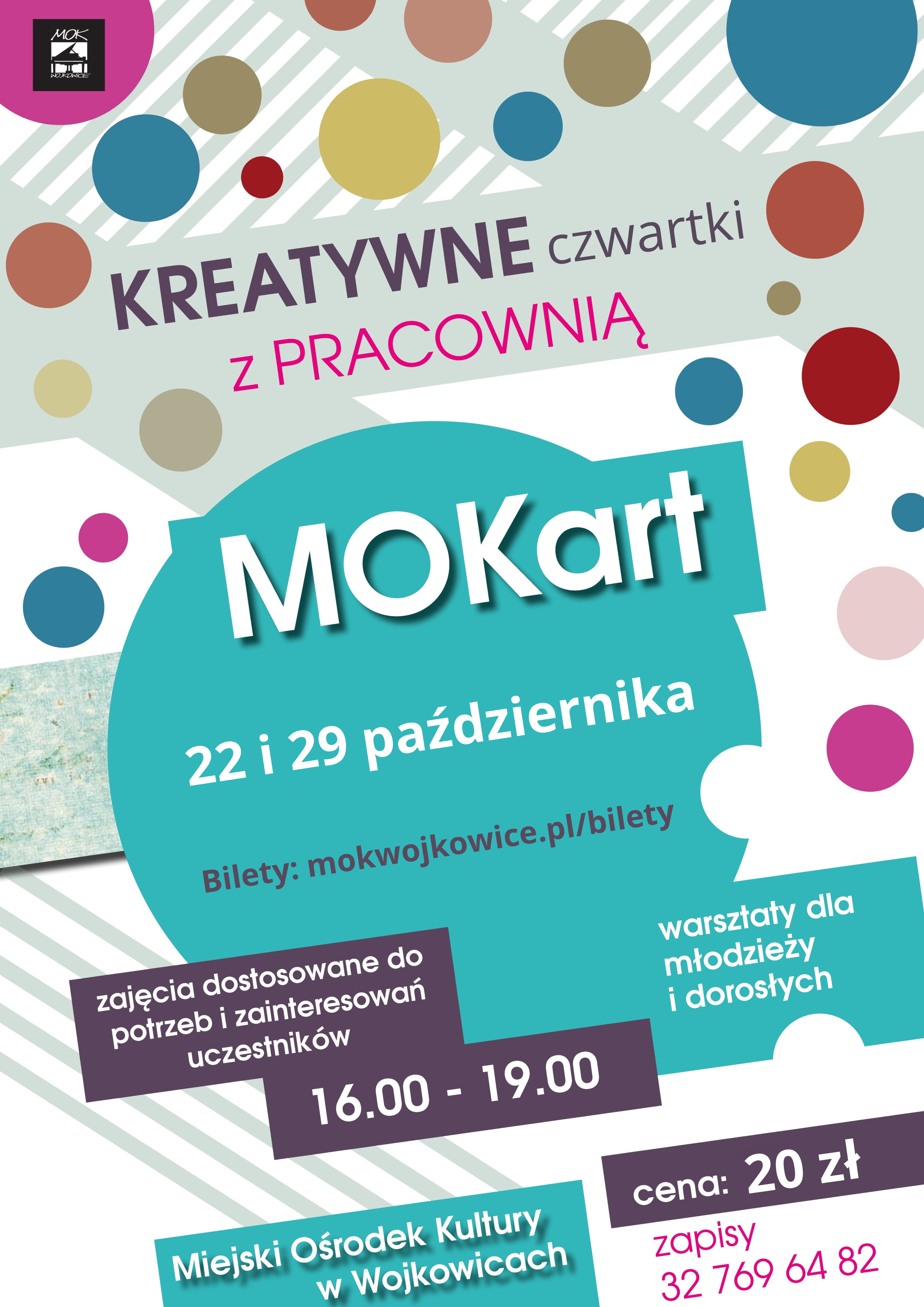 Zajęcia w pracowni MOK art to zawsze duża dawka pomysłów, niebanalnych rozwiązań, pięknych inspiracji prezentowych oraz dekoracyjnych. Z wiedzą którą wyniesiesz z naszych zajęć sprawisz, że zwykłe przedmioty nabiorą charakteru, a każda dekoracja i pamiątka stworzona pod okiem prowadzącej, stanie się wyjątkowym drobiazgiem. Podczas warsztatów poznajemy przeróżne techniki w tym mi.n. decoupage, ozdabianie za pomocą bibuły i wiele innych. W czwartek 22 października zapoznamy się z tworzeniem kopert w technice 3d. Każda taka koperta będzie niepowtarzalna i będzie również pięknym artystycznym przedmiotem. Kolejne spotkanie będzie poświęcone tworzeniu kartek pop up! Aby przekonać się jak wyglądają- koniecznie weźcie udział w zajęciach. Cena jednych zajęć to 20 zł. Bilety dostępne w kasie oraz na www.mokwojkowice.pl/bilety