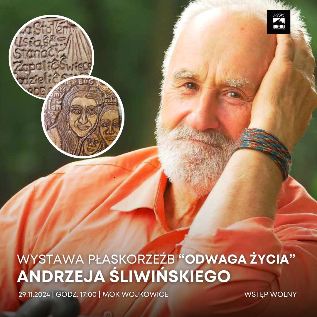 Miejski Ośrodek Kultury w Wojkowicach serdecznie zaprasza na spotkanie z twórczością Andrzeja Franciszka Śliwińskiego – mieszkańca Wojkowic, rzeźbiarza, pisarza oraz miłośnika przyrody. Pan Andrzej jest twórcą nieprofesjonalnym, mającym w swoim dorobku wiele wystaw, a także publikacji poetyckich. Jest człowiekiem wielu pasji, którymi chętnie dzieli się z innymi. W Wojkowicach zobaczymy kolekcję jego drewnianych płaskorzeźb na wystawie zatytułowanej „Odwaga życia”. W drewnie rzeźbi od 1989 roku i to również w tym czasie zafascynował się ekologią. Wystawa odbędzie się 29 listopada o godzinie 17.00. Wstęp na wydarzenie jest wolny.
