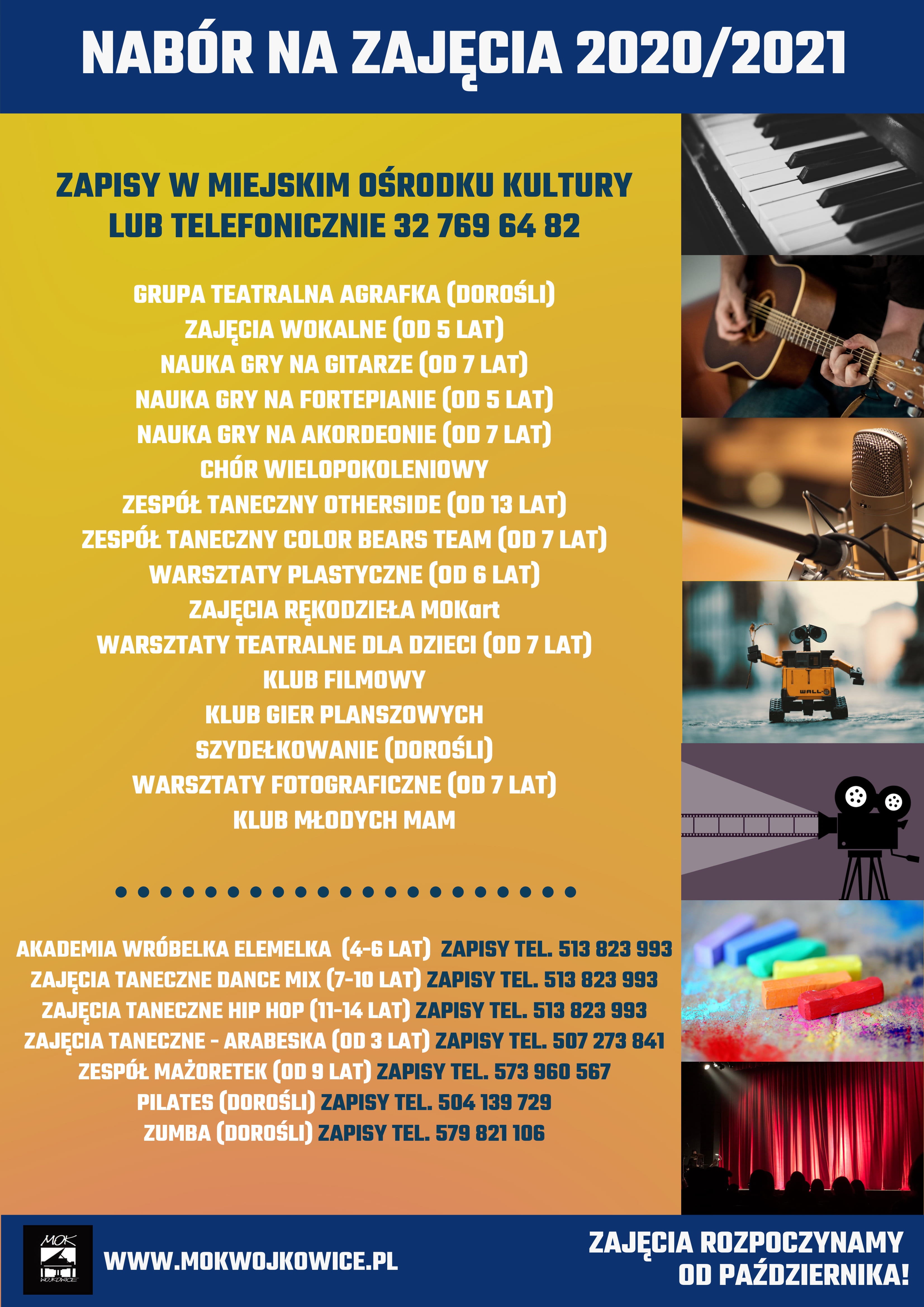 Więcej informacji oraz zapisy – 32 769 64 82 lub zajecia@mokwojkowice.pl